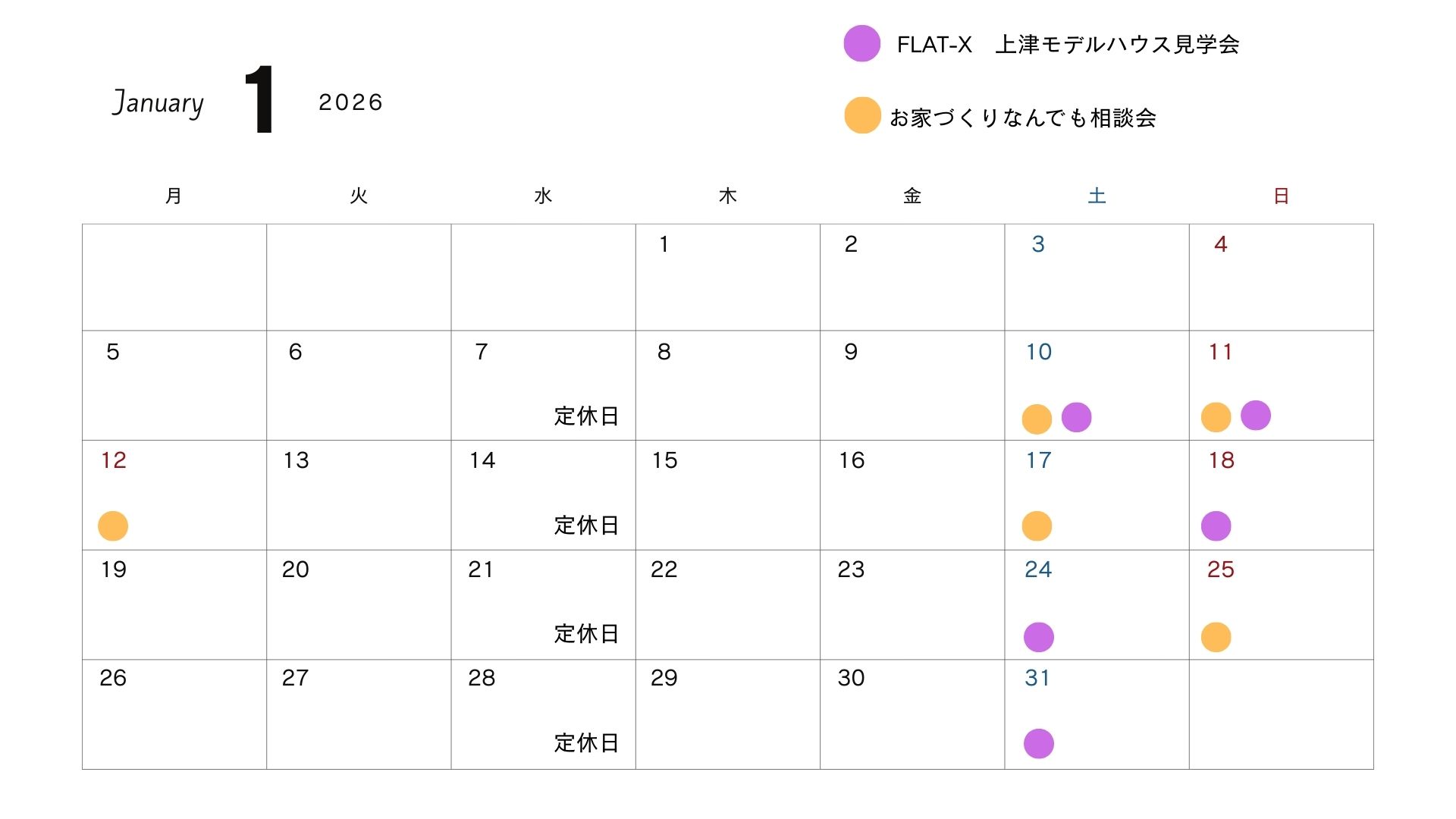 店休日:1月7日(水)・14日(水)・21日(水)・28日(水)