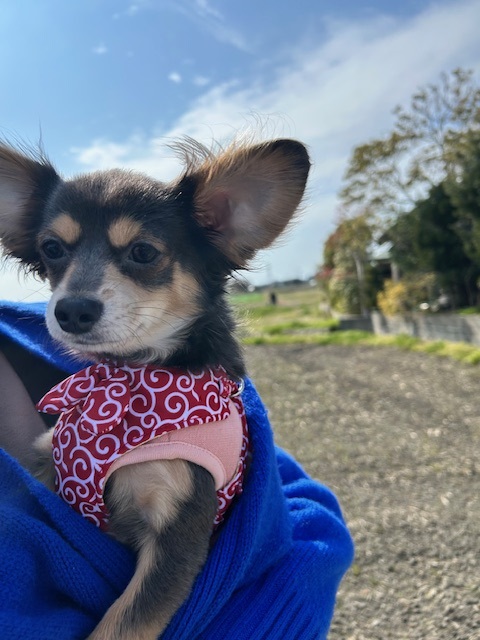 盗人柄のハーネスがとても可愛くて、気候も暖かくなってきたので